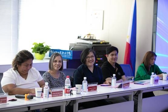 随后,双方在中非(重庆)职业教育交流中心举行座谈会。副校长刘成俊代表学校首先对菲律宾代表团一行到访表示欢迎,并简要介绍了学校办学特色、专业设置、人才培养成果等内容。菲律宾高等教育委员会代表肯定了学校在国际化办学方面取得的突出成果,提出希望双方通过相互交流、科研协作以及共享资源来达成全球化教育高质量发展的目标。菲律宾技术教育与技能发展局(TESDA)代表就人力资源开发、跨专业人才培养建设体系等做了介绍。随后,与会菲律宾大学代表就本校发展和办学特色做了交流。双方还在职业院校建设经验及创新点等领域进行了深入的探讨,在专业建设、国际交流、平台搭建等方面初步达成合作意向。