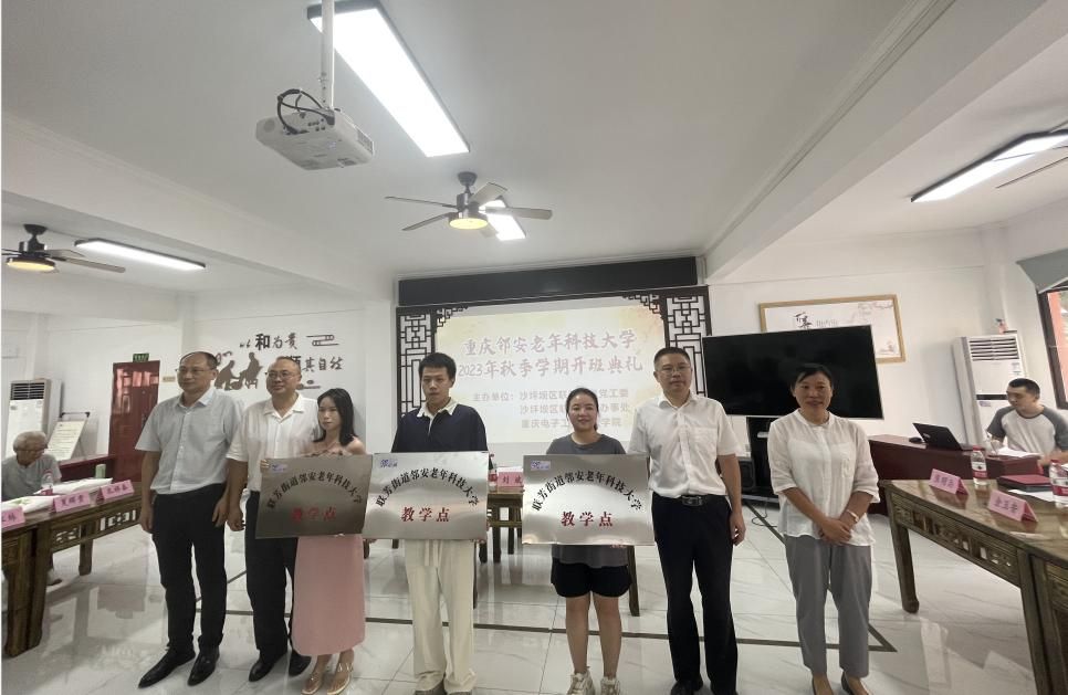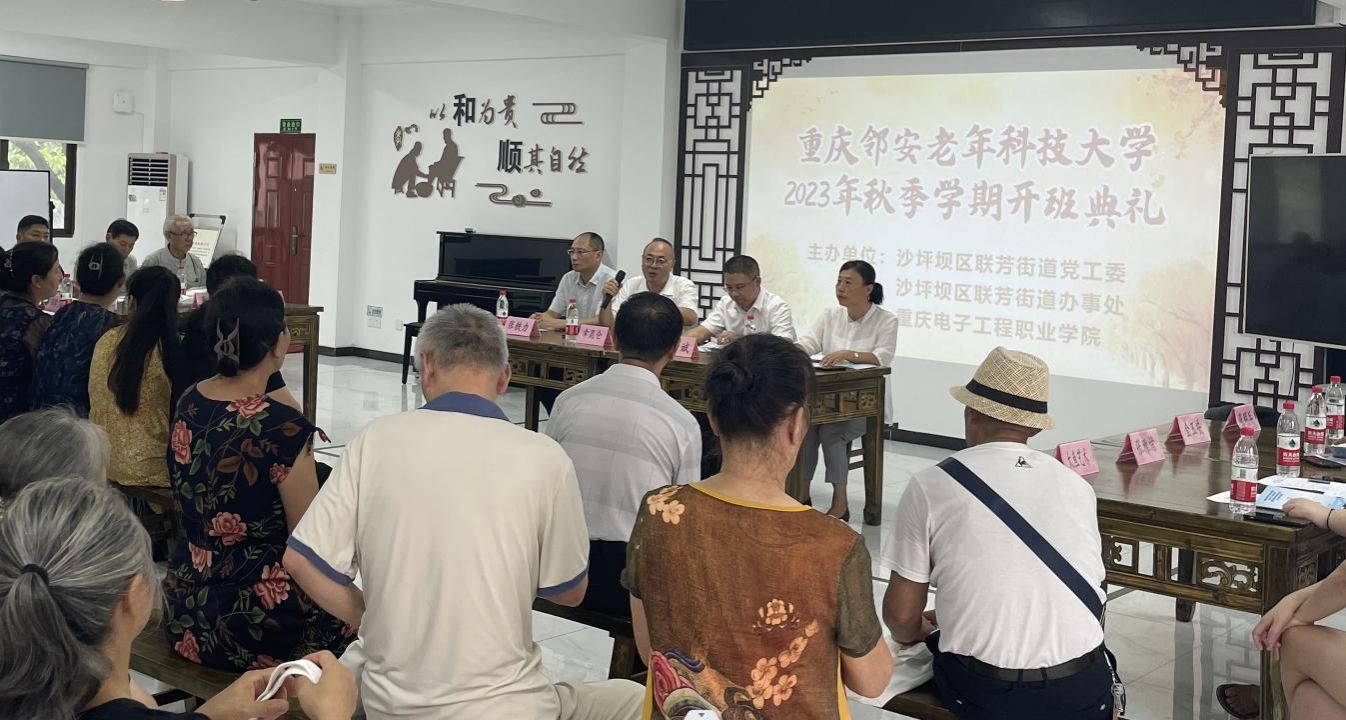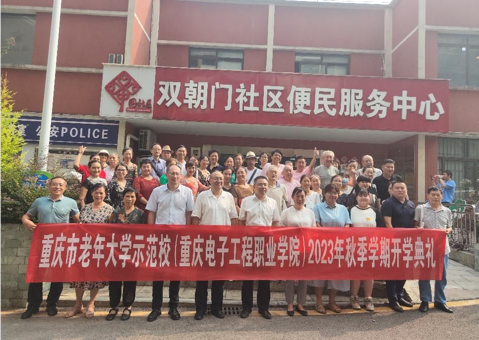 2023年9月18日下午,重庆市老年大学示范校(重庆电子工程职业学院) 2023年秋季学期开班典礼在沙坪坝区联芳街道双朝门社区顺利举行,参会的领导及嘉宾有pg国际副校长幸昆仑教授、沙坪坝区联芳街道党工委书记刘斌、学校人工智能与大数据学院党总支副书记张铁力、项目管理科科长刘江林、培训与继续教育学院张明兵老师出席典礼、教师代表、学员、街道社区教育专干(班主任)和教培机构负责人等100余人参加。