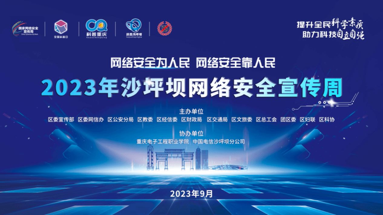 重庆电子工程职业学院开展了以“网络安全为人民,网络安全靠人民”为主题的网络安全宣传周系列活动,向沙坪坝区社区居民、在校师生普及网络安全知识,提升网络安全意识,加强个人信息和数据安全保护,谨防电信网络诈骗,防范网络安全风险,共筑网络安全防线。该活动在市教委科技处、沙坪坝区公安分局、沙坪坝区网信办的指导下,由重庆电子工程职业学院网络安全与信息化办公室牵头,联合重庆警察学院,协同学校党委宣传部、党委学生工作部等部门精心组织策划,在全校各二级单位的大力支持下,通过学校线上门户网站宣传、在线答题、发放解读宣传材料、LED展播国家网络安全宣传周公益视频、集中培训、组织攻防实战演练、参加CTF攻防大赛等多种形式,建立网络安全教育长效机制,拓宽师生网络安全知识学习渠道,深入宣传贯彻《网络安全法》《数据安全法》《个人信息保护法》《反电信网络诈骗法》等法律法规和政策内容,提升师生的网络安全意识,防止网络诈骗案件发生,保障师生财产安全。