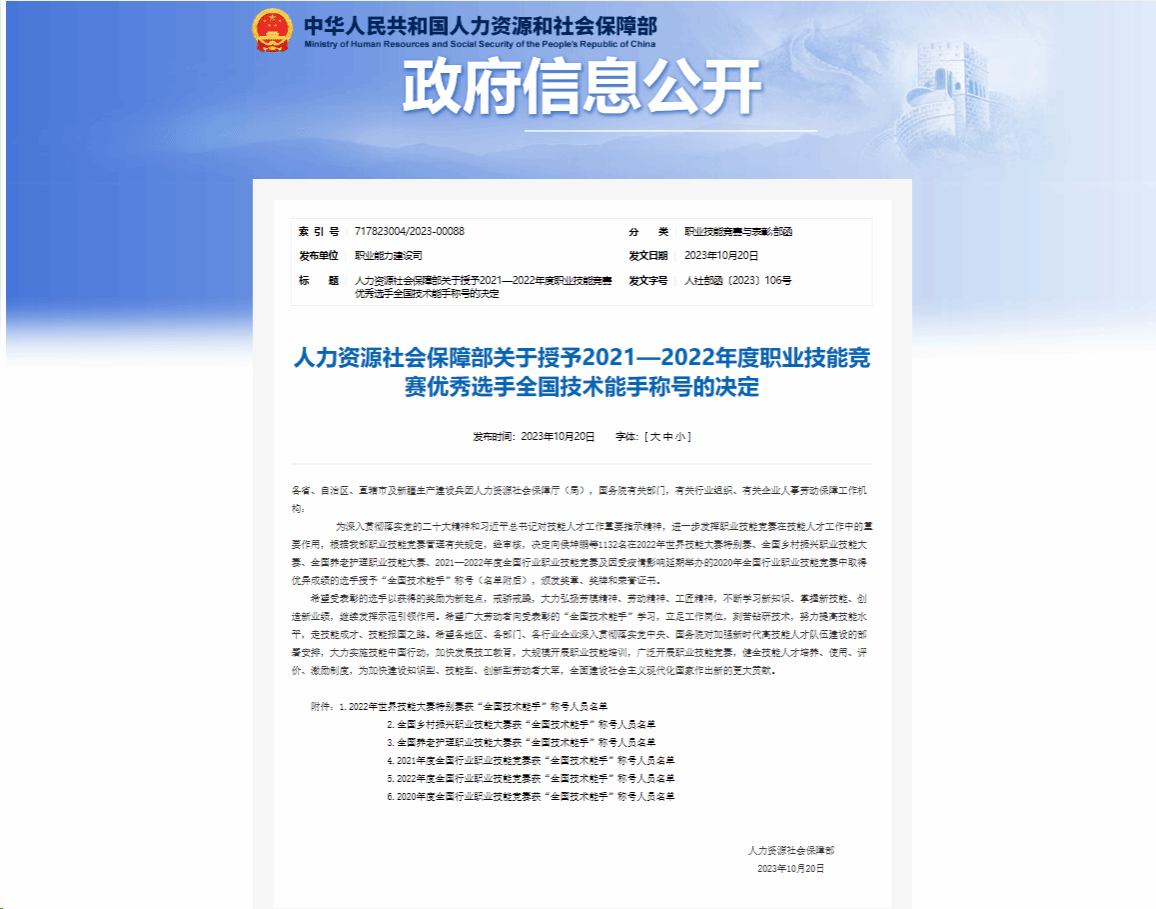 近日,人力资源社会保障部印发《关于授予2021—2022年度职业技能竞赛优秀选手全国技术能手称号的决定》,对2021—2022年度全国行业职业技能竞赛及因受疫情影响延期举办的2020年全国行业职业技能竞赛中取得优异成绩的选手授予了“全国技术能手”称号,pg国际13名教师入选(名单如下)。