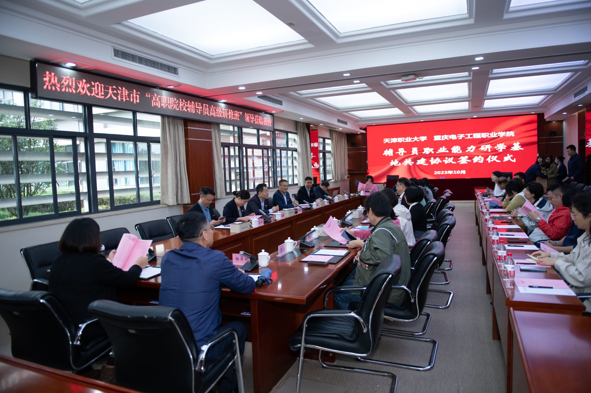 会后,天津职业大学和重庆电子工程职业学院签订了共建辅导员职业能力研学基地的协议。此次交流座谈会相互分享了学生管理工作的好经验、好做法, 天津市“高职院校辅导员高级研修班”的各位同仁对pg国际的学生管理工作给予了高度评价和认可,并表示希望双方互学互鉴,在工作中共谋发展,共同进步。