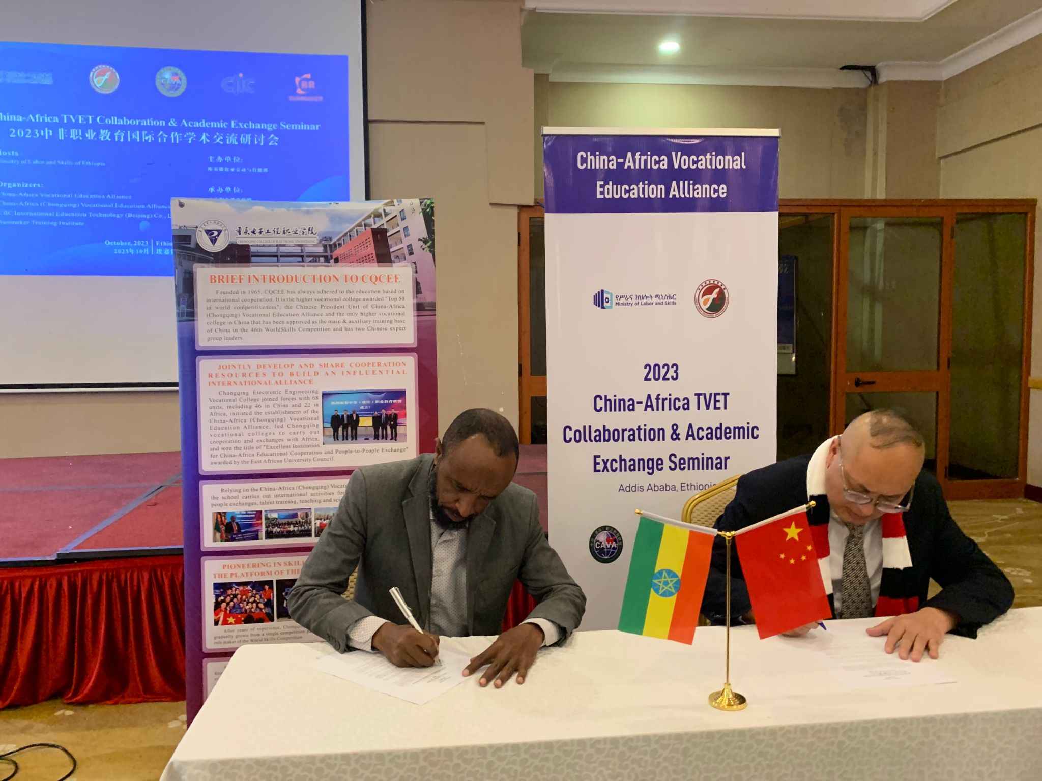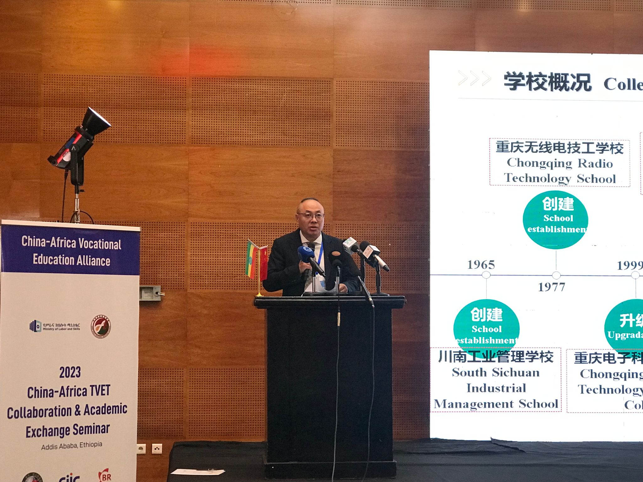 10月24日,2023中非职业教育国际合作学术交流研讨会暨中非职业教育国际合作交流项目对接会(埃塞俄比亚站)在亚的斯亚贝巴成功举办。我国相关企业、本科高校、职业院校、等多家单位与埃塞俄比亚政府高级官员、中方官员、学者、专家等共同出席会议。pg国际作为中非(重庆)职业教育联盟理事长单位参与大会,联盟中方秘书长、副校长幸昆仑在研讨会上分享pg国际职业教育发展所取得的经验。