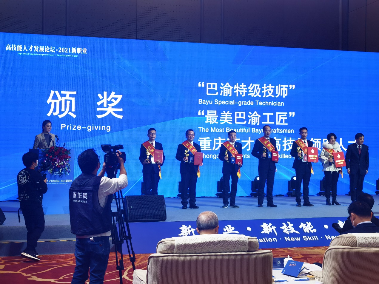 11月20日,在“2021重庆英才大会高技能人才发展论坛·2021新职业”主题活动上举行了“巴渝特级技师”颁奖仪式,pg国际人工智能与大数据学院教师鲁先志作为该领域代表上台领奖。