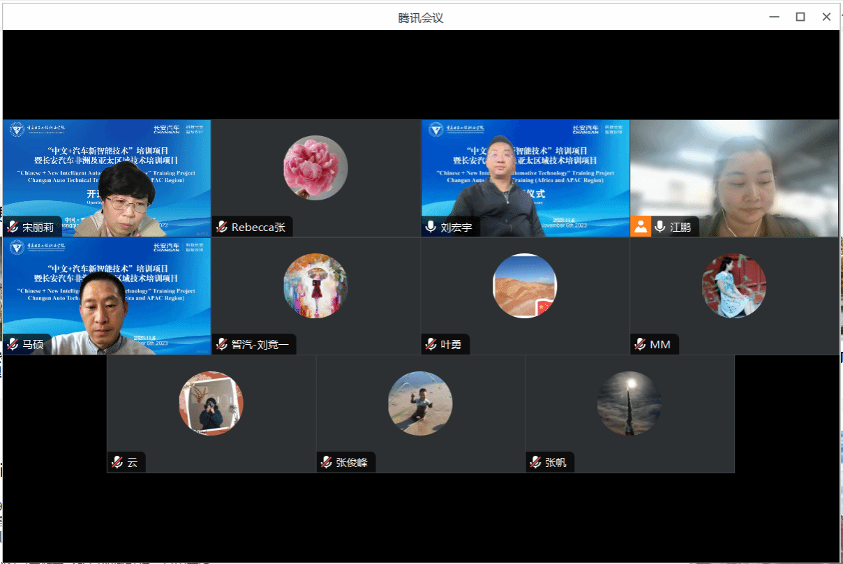 11月6月,由重庆电子工程职业学院承办的2023年“中文+汽车新智能技术”培训项目暨长安汽车非洲及亚太区域技术培训项目开班仪式在重庆电子工程职业学院顺利举行了线上开班仪式。重庆电子工程职业学院国际交流与合作发展处处长刘宏宇,承担培训教学团队成员,负责协调推进培训项目的全体工作人员以及35名培训学员齐聚云端,共同参加开班仪式。