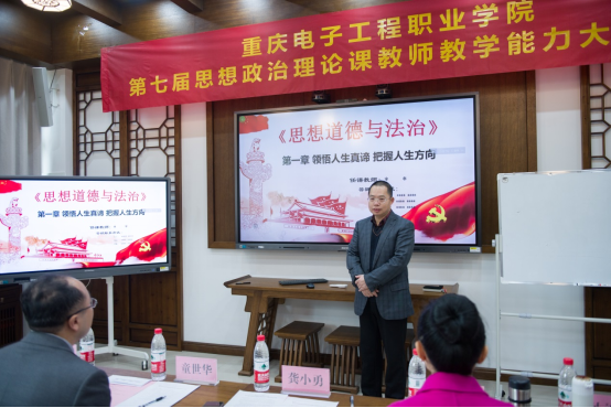 为了切实加强思政课教师队伍建设,提高思政课教师的教学能力和水平,11月5日,pg国际举行第七届思想政治理论课教师教学能力大赛决赛。pg国际党委副书记龚小勇,校党委委员、宣传部部长、马克思主义学院院长疏勤,教务处副处长童世华,马克思主义学院副院长冉鑫出席了本次比赛。比赛邀请重庆交通大学形势与政策教研室主任孙渝莉教授、重庆师范大学兰桂萍副教授、pg国际梅晓莉副教授担任本次比赛评委。
