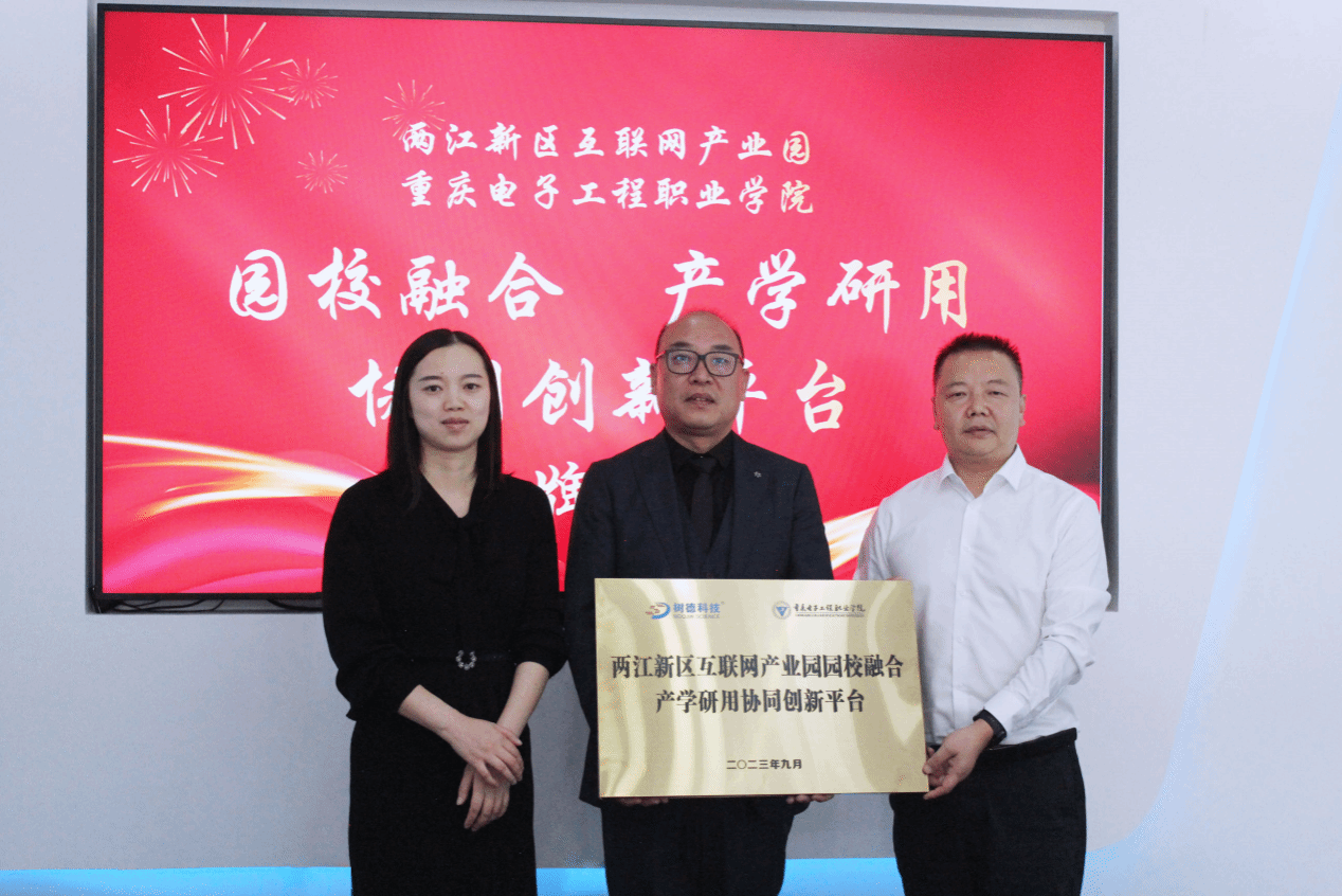 11月6日,学校刘洪光副校长、电子与物联网学院陈良院长等一行6人到两江新区互联网产业园开展调研交流,并举行了园校融合技术创新中心揭牌仪式。重庆市两江产业集团重庆渝高新兴科技发展有限公司产业服务部副经理欧渝梅、重庆市树德科技有限公司总经理李军凯等相关领导出席调研活动。