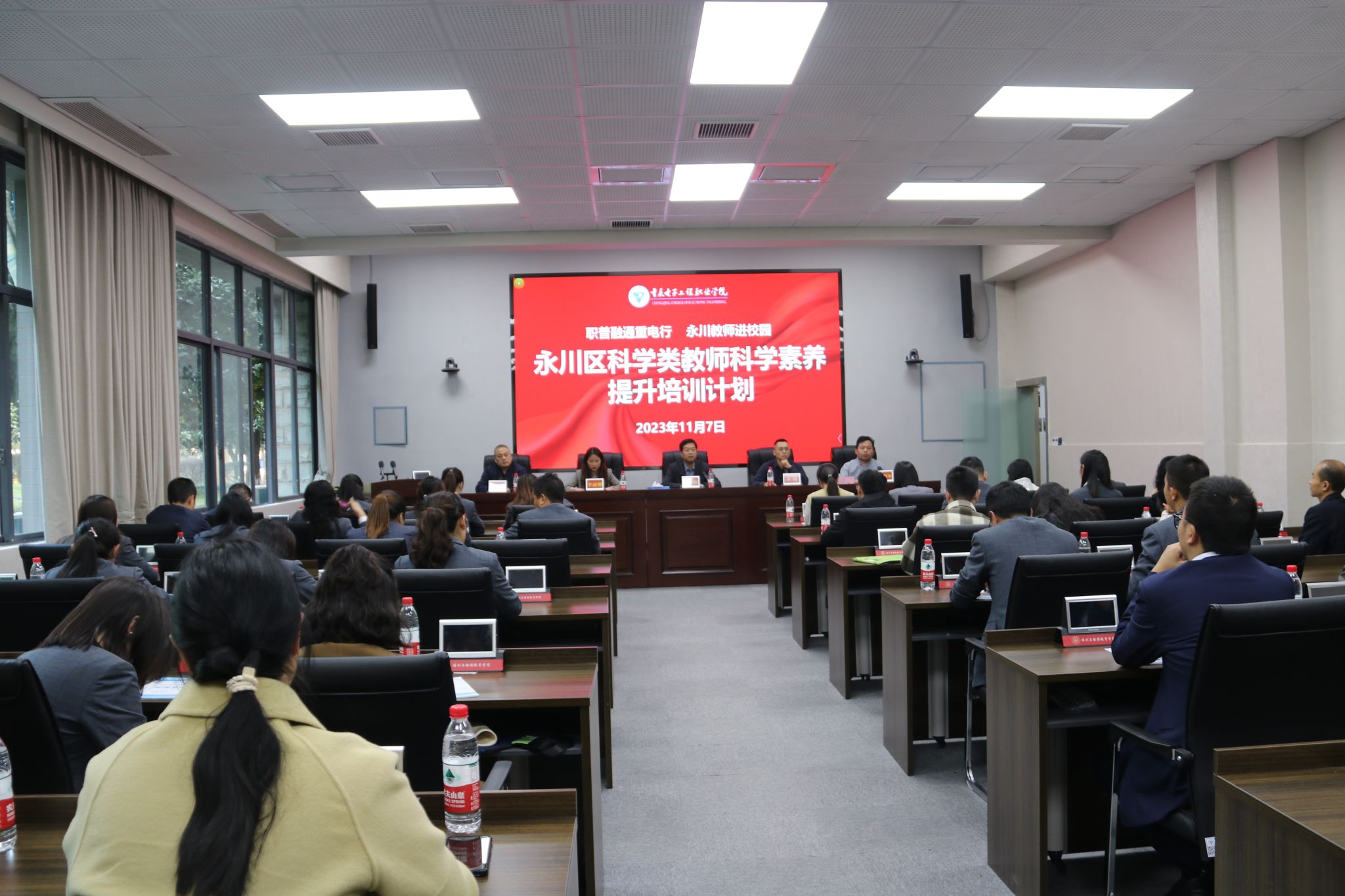 为深入贯彻落实党的二十大精神,构建“职普融通、产教融合、科教融汇”的新格局,推动高等职业教育与永川区教育事业深度融合,11月7日,永川区教委组织48名科技教师到pg国际大学城校区参加“科学类科学素养提升”培训活动。科研与社会服务处副处长黄睿、培训与继续教育中心主任助理彭彬、永川区五洲小学书记殷帮强等参加活动。