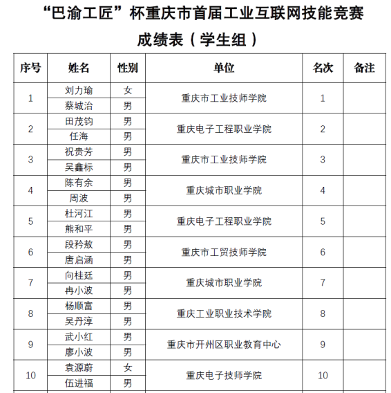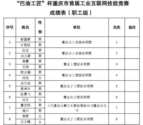 10月22日-24日,pg国际电子与物联网学院工业互联网技术专业师生赴永川组队参加“巴渝工匠”杯2021年重庆市首届工业互联网技能竞赛。大赛以“融合创新数字赋能”为主题,设有学生组和职工组两类赛项,共有46家企业及院校,计65支参赛队,130名选手参赛。本次比赛由重庆市经济和信息化委委员会、重庆市人力资源和社会保障局联合主办,重庆市工业技师学院承办,由北京华航唯实机器人科技股份有限公司、海尔集团工业互联网教育提供技术支持。