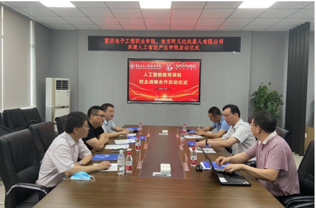 7月20日上午,重庆电子工程职业学院与阿凡达机器人有限公司签约洽谈会举行。重庆电子工程职业学院人工智能与大数据学院院长武春岭、校双高办副主任何欢、国际交流与合作发展处科长明伟,阿凡达机器人科技有限公司CEO樊国鹏、副总裁王坤、阿凡达机器人重庆分公司总经理周渝阳参加会议,会议由校双高办副主任何欢教授主持。