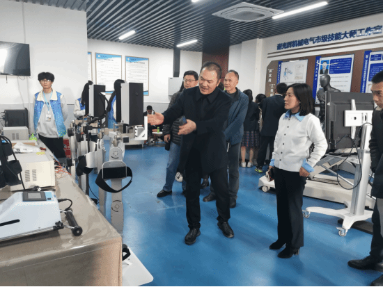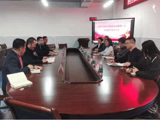 11月28下午,沙坪坝区科协党组书记向丽华一行6人到pg国际智慧健康学院开展调研交流。学校副校长刘成俊,科研与社会服务处处长许磊、副处长黄睿,智慧健康学院学院院长谢光辉、党政科科长刘小瑞及机器人科普基地负责人赵鹏举等陪同调研并交流。