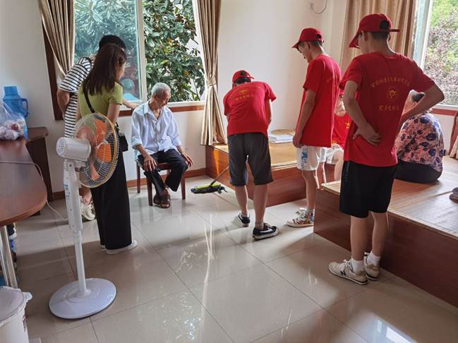 实践团的同学们为老人们整理了房间,清洁了居住环境。机电设备与维修管理专业的万昌鸿看见彭友金老人的风扇积了一层厚厚的灰,替彭奶奶,拆下扇叶,仔细清洗后,再细心的将风扇完整的组装完毕。