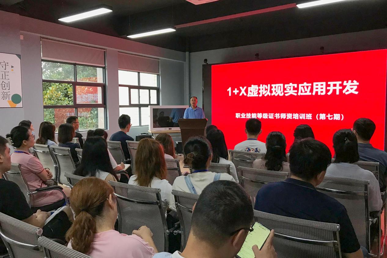 2021年7月19日上午,全国1+X虚拟现实应用开发职业技能等级证书师资培训开班仪式在pg国际数字媒体学院举行,仪式由pg国际数字媒体学院动画影视系主任罗坚主持,数字媒体学院院长刘晓东致欢迎辞。
