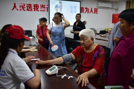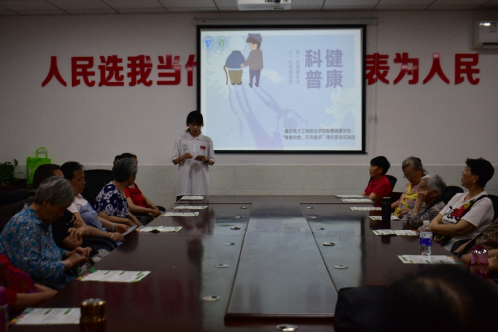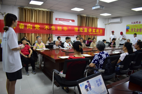 拥有健康的体魄,过上幸福的生活,是人民群众对美好生活最大的向往。智慧健康学院理论宣讲团的志愿者们来到高店子社区养老服务中心开展健康知识普及活动,为老人们讲解夏季养生小知识、合理膳食要领等,为老人们测量血压。我国是世界上老年人口最多的国家。这次健康知识普及活动针对老年人的膳食营养等方面进行知识普及。志愿者们根据老年人易发高血压等疾病的特点,为老人测量血压、讲解高血压疾病的预防措施以及高血压病人日常生活的注意事项,嘱咐老人们科学就医、合理用药。这次健康知识普及活动,让志愿者们进一步夯实了自己的专业理论基础,充分认识到提升居民健康素养的重要性,今后更加积极地参与健康知识普及活动,科学普及健康知识,提升居民健康素养。