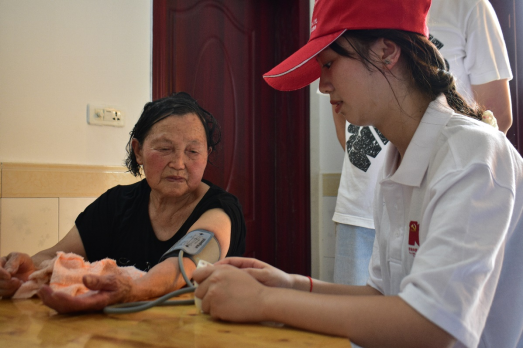 志愿者为奶奶量血压