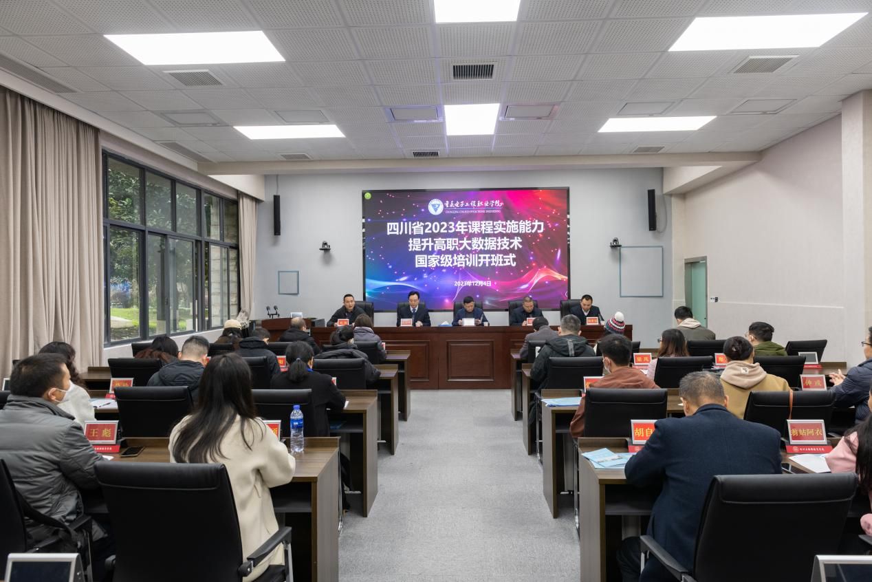 12月4日,由四川省教育厅主办,pg国际承办的四川省2023年课程实施能力提升高职大数据技术国家级培训在pg国际国培基地博学厅开班,教育部国培(重电)基地办主任、重电职教师资培训学院书记兼院长、培训与继续教育学院院长莫绍强教授,人工智能与大数据学院院长武春岭教授,教育部国培(重电)基地办副主任张亚,教育部国培(重电)基地办综合科明伟科长,教学班主任郑孝宗老师以及来自四川省各高职学校的24名老师参加开班仪式。开班仪式由基地办综合科明伟科长主持。
