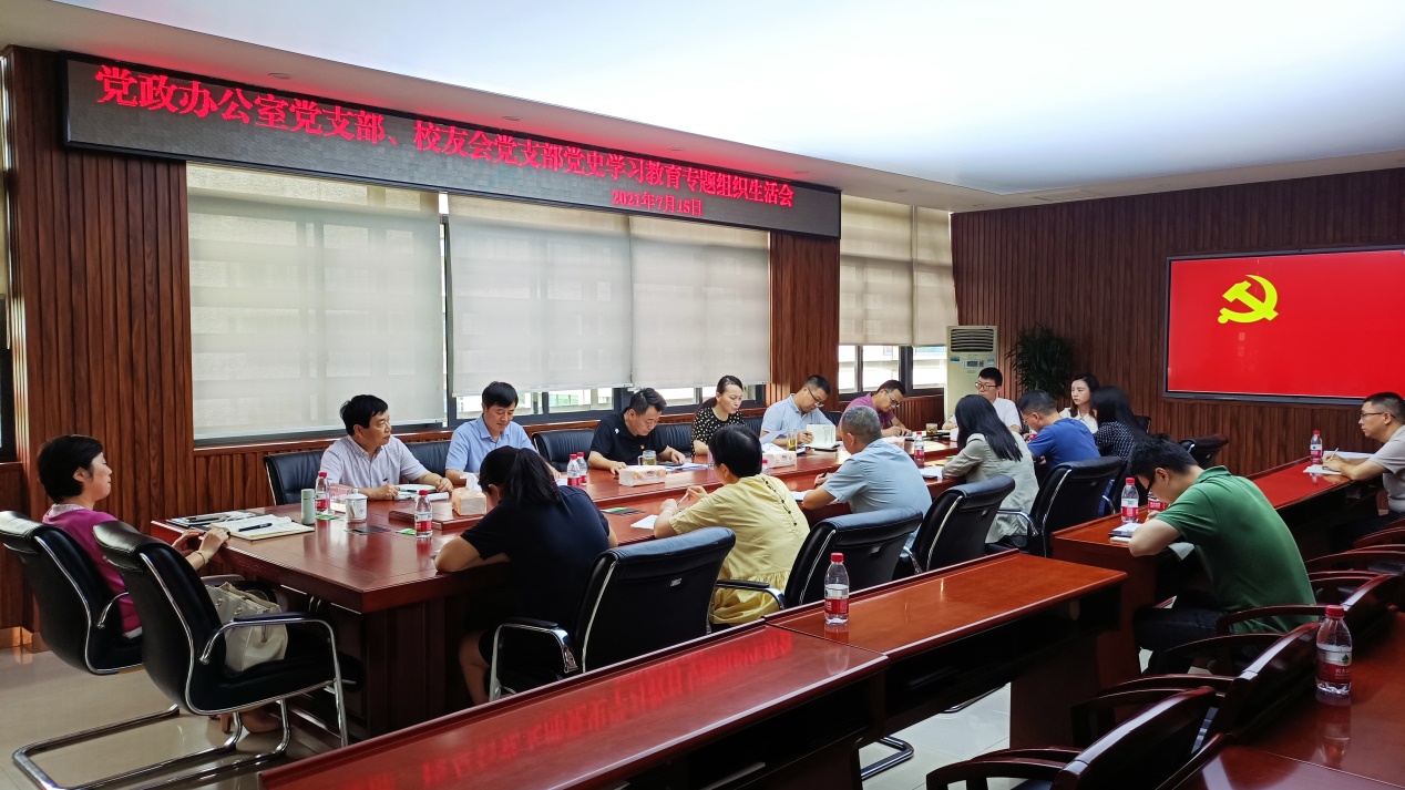 7月15日,党委书记孙卫平同志以普通党员身份参加党政办支部专题组织生活会,与支部党员同志一起,深入学习习近平总书记在庆祝中国共产党成立100周年大会上的重要讲话,围绕“学党史、悟思想、办实事、开新局”主题,交流学习体会,查找差距不足,深刻剖析原因,明确整改措施。党史学习教育市委第二十四指导组副组长马维嘉同志到会指导。学校机关党委书记徐继燕同志出席会议。