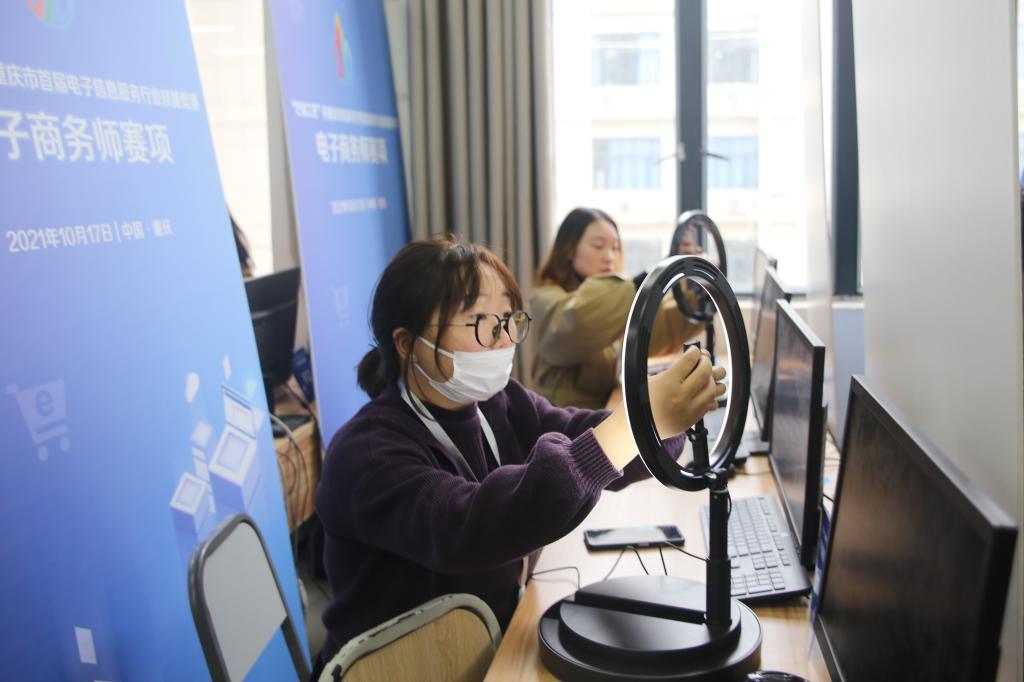 本赛项是“巴渝工匠”杯2021年重庆市系列职业技能竞赛计划项目,设置职工组和学生组两个组别,竞赛形式为个人赛,来自全市30个参赛单位的83名学生组选手和32名职工组选手参加了本次竞赛。比赛对接电子商务师国家职业技能等级标准(三级),包括网店直播、视觉营销设计、网上交易管理、网络客户服务、电子商务数据分析与应用、网络推广六项竞赛内容,竞赛总时长6小时。经过一天紧张激烈的角逐,比赛于当天下午圆满落幕,重庆电子工程职业学院参赛选手黄月和重庆工业职业技术学院参赛选手黄丹分获学生组与职工组第一名。