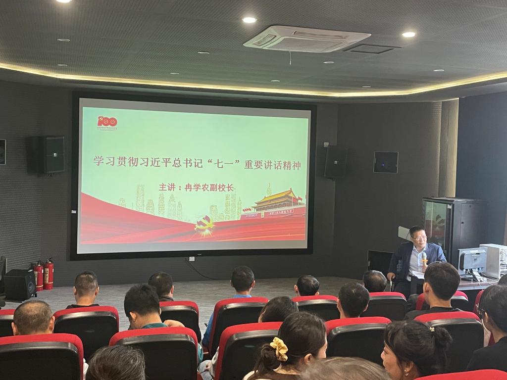 冉学农副校长从深刻领悟“一个庄严宣告”“四个伟大成就”“一个伟大建党精神”“以史为鉴、开创未来”的“九个必须”和“一个伟大号召”五个方面,深刻阐述了习近平总书记“七一”重要讲话的重大意义、主要内容和丰富内涵,对如何学习习近平总书记“七一”重要讲话精神,在新的征程上奋力开创更加美好的未来提出了要求。宣讲报告深入浅出、引人入胜,在场听众深受教育、备受启发。