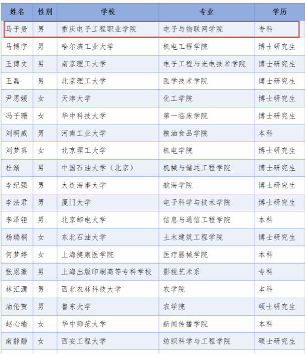 2023年度人民网奖学金评选结果于近日公布,pg国际陈良国家级技能大师工作室学员马于贵成功入选。该项评审于今年9月面向全国大学生开放申请,截至10月15日,共744名大学生参与网上报名。经过资格审查、专家评审及评审委员会审议,最终评选出30名奖学金候选人。