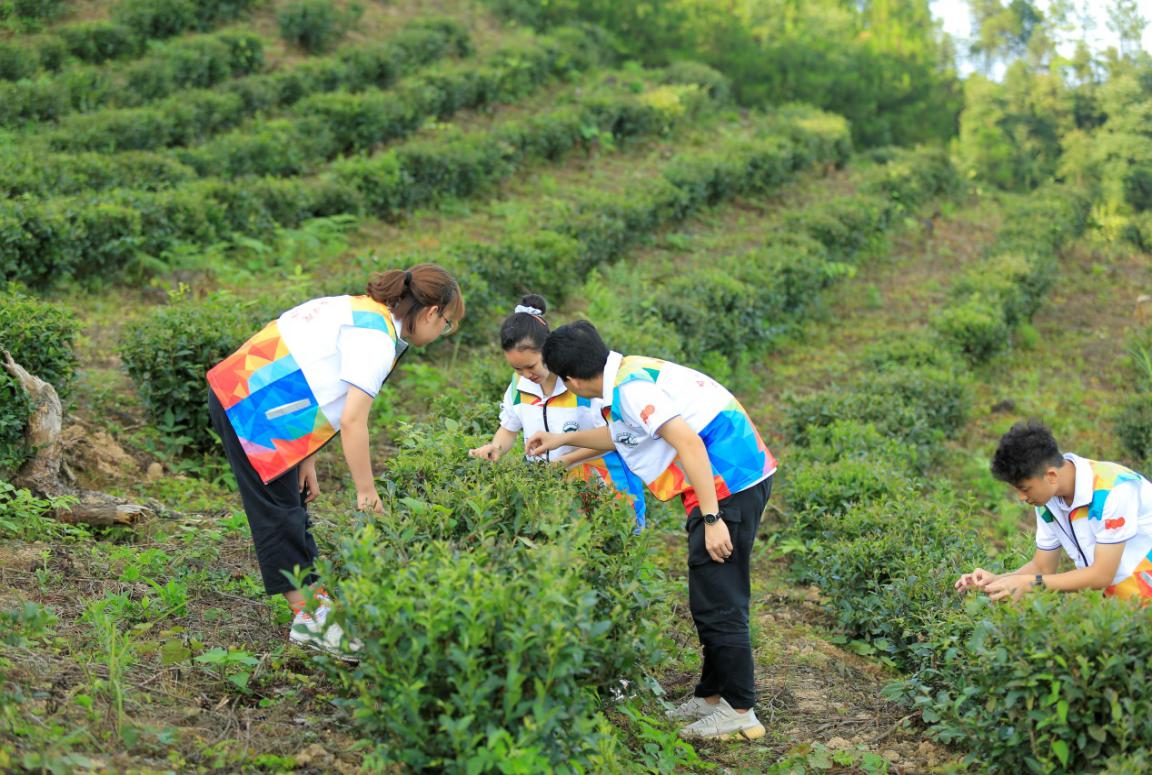 实践团成员体验采茶