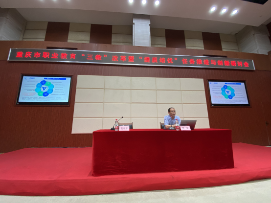 7月10日,由重庆职业教育学会、重庆市高等职业技术教育研究会主办,重庆工业职业技术学院、高等教育出版社承办的重庆市职业教育“三教”改革暨“提质培优”任务推进与创新研讨会,在重庆工业职业技术学院召开。会议集结了重庆市中职、高职院系主任、骨干教师等近300人参会。pg国际电子与物联网学院院长陈良教授受邀做主旨报告。