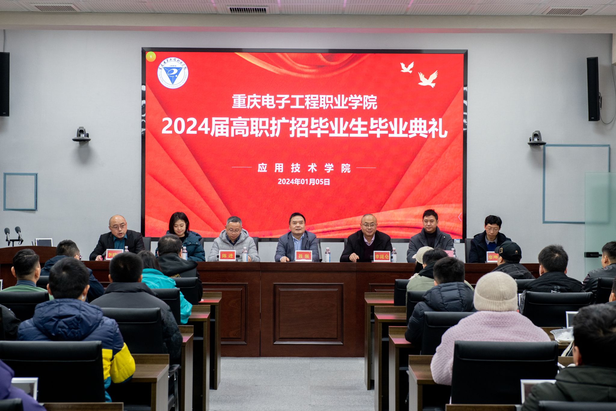 1月5日上午,应用技术学院2024届高职扩招毕业生毕业典礼举行。校党委副书记、校长聂强教授、副校长幸昆仑教授、教务处领导、学工部领导、相关二级学院领导、辅导员及2024年毕业生代表在现场见证毕业典礼的荣耀时刻,为毕业生扬帆起航、追逐人生梦想送上深深祝福,应用技术学院副院长李晓斌主持典礼。
