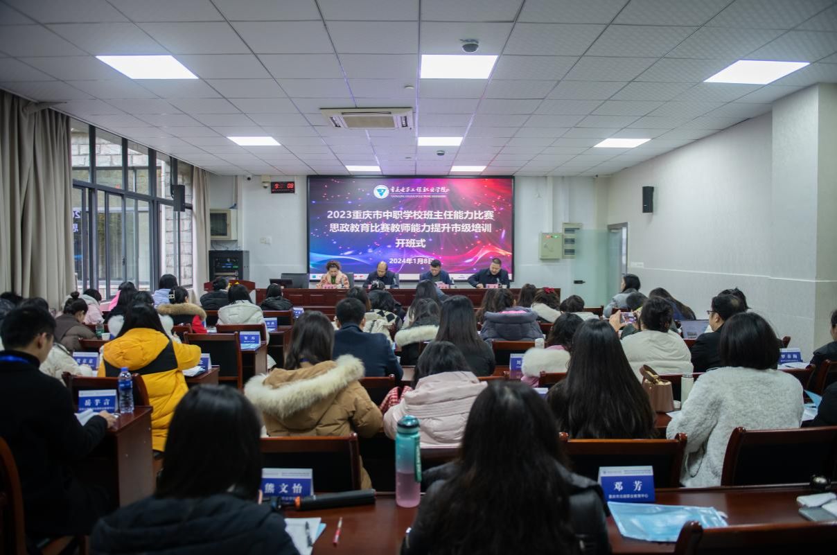 2024年1月8日,由重庆市教委主办,重庆市职业教育学会联合pg国际承办的重庆市2023年职业院校技能大赛中职班主任能力比赛、思政教育比赛优秀教师和指导教师能力提升培训培训在pg国际国培基地博才厅开班,重庆市职业教育学会驻会副会长兼秘书长况力,重庆市职业教育学会宣传培训部主任袁丽娟,教育部国培(重电)基地办主任、重电职教师资培训学院书记兼院长、培训与继续教育学院院长莫绍强教授,以及来自我市各中职学校的70名老师参加开班式。开班式由基地副主任张亚主持。