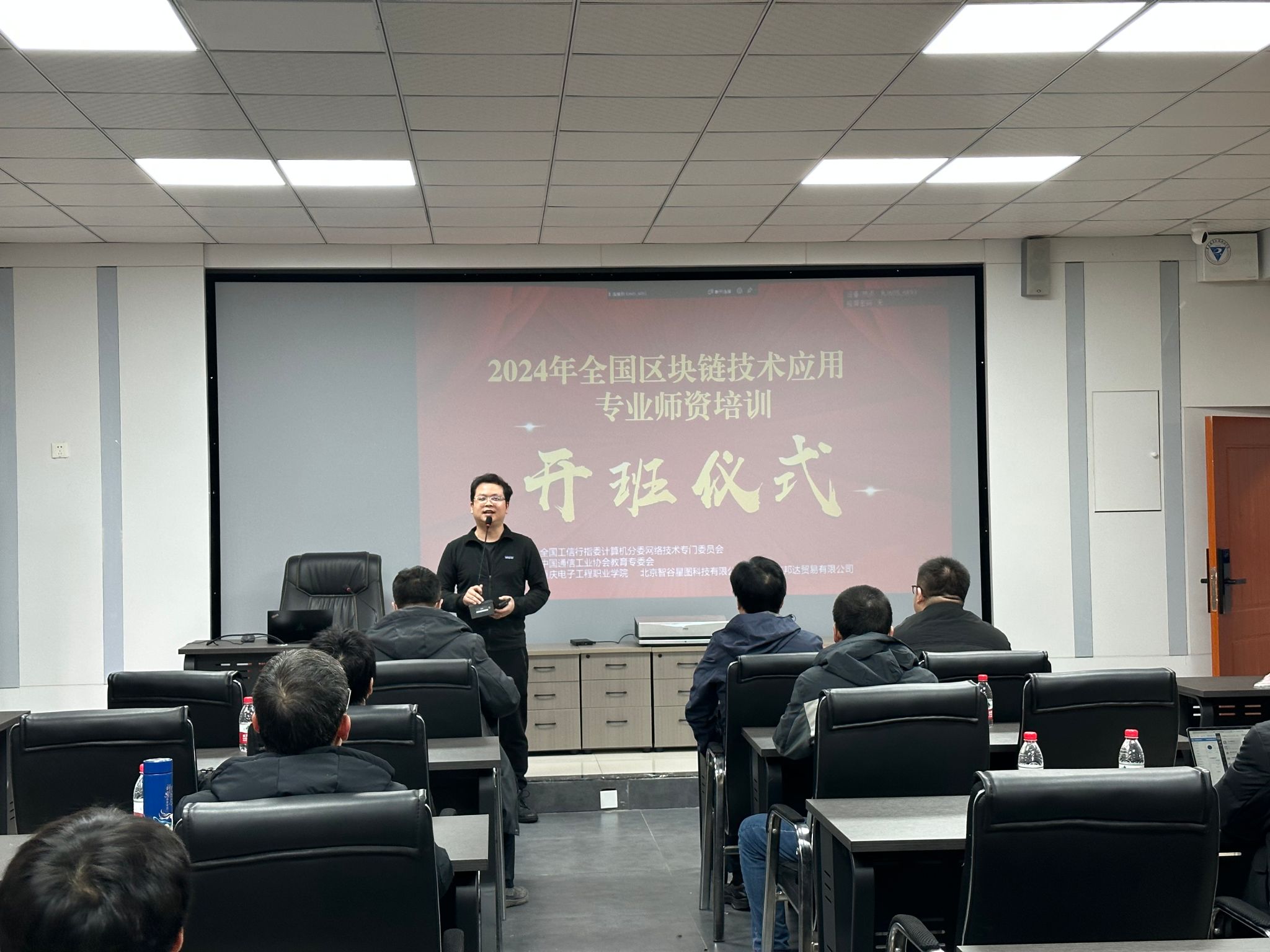 1月4日,由全国工信行指委计算机分委网络技术专门委员会、中国通信工业协会教育专委会主办,pg国际联合北京智谷星图科技有限公司、北京京邦达贸易有限公司承办的2024年全国区块链技术应用专业师资培训(重庆)在人工智能与大数据学院4105会议室开班,人工智能与大数据学院院长武春岭,北京智谷星图科技有限公司总经理秦备,云计算与大数据系主任李腾以及来自国内8省10市的49名老师参加了开班仪式。开班仪式由北京智谷星图科技有限公司总经理秦备主持。