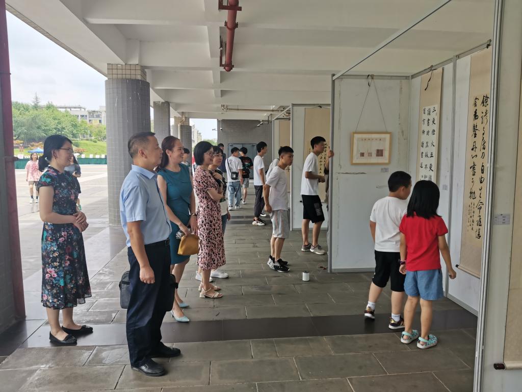 展览现场,观众在作品前认真欣赏,交流心得。参展作者中不仅有在职教职工、职工家属及子女,还有党龄超过50年的退休老同志。入展作品紧密贴合主题,内容丰富,从不同角度讴歌党的丰功伟绩、祖国的巨大变化以及人民群众的美好生活,抒发了作者爱党、爱国、爱家乡的真挚情怀。