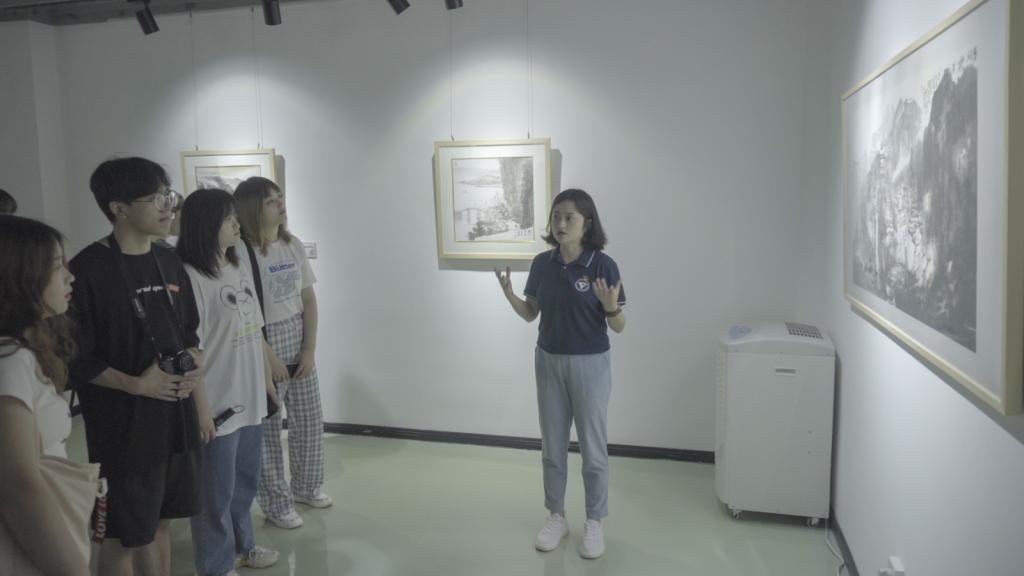 在酉阳龚滩古镇,马克思主义学院形势与政策教研室主任周叶露老师和数字媒体学院专业教师罗淞译带领学员们追寻着著名画家吴冠中的足迹,帮助同学们理解吴冠中为何说龚滩古镇“是唐街,是宋城,是爷爷奶奶的家”。从这句话为学员们探寻龚滩古镇的前世今生,理解龚滩古镇的历史底蕴,认识改革开放以来龚滩古镇的移民文化,为学员们完成的专业作品增加深厚的文化温度。在龚滩美术馆,专业教师范永富现场教授学员书法技巧。