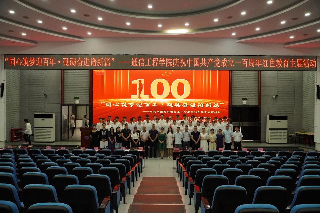 百年恰是风华正茂,砥砺前行续写华章。为庆祝中国共产党建党一百周年,通过党史学习增强广大通信师生的理想信念,提升政治觉悟,引导老师、同学们发扬党的光荣传统和优良作风,2021年6月29日,由通信工程学院党总支主办,通信工程学院党总支·党员流动服务站和通信工程学院团总支学生会承办的“同心筑梦迎百年砥砺奋进谱新篇”庆祝建党一百年红色教育主题活动在博远厅顺利举行。