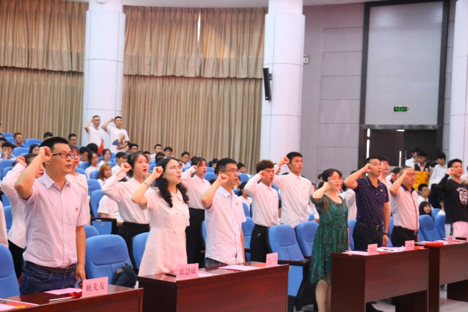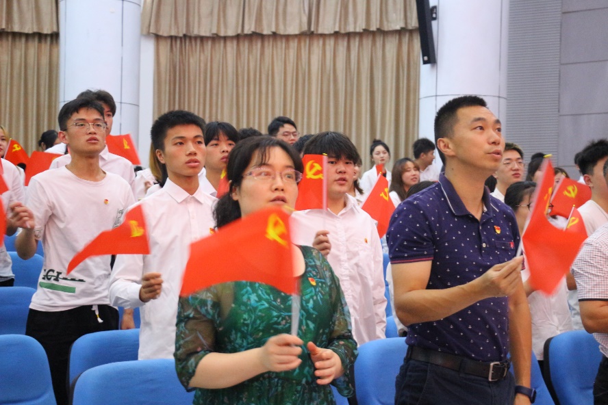 此后,由学生党支部书记李霞老师带领全体党员同志面向党旗重温入党誓词,一字一句,神圣而豪迈,进一步坚定了信仰,强化了党性观念。