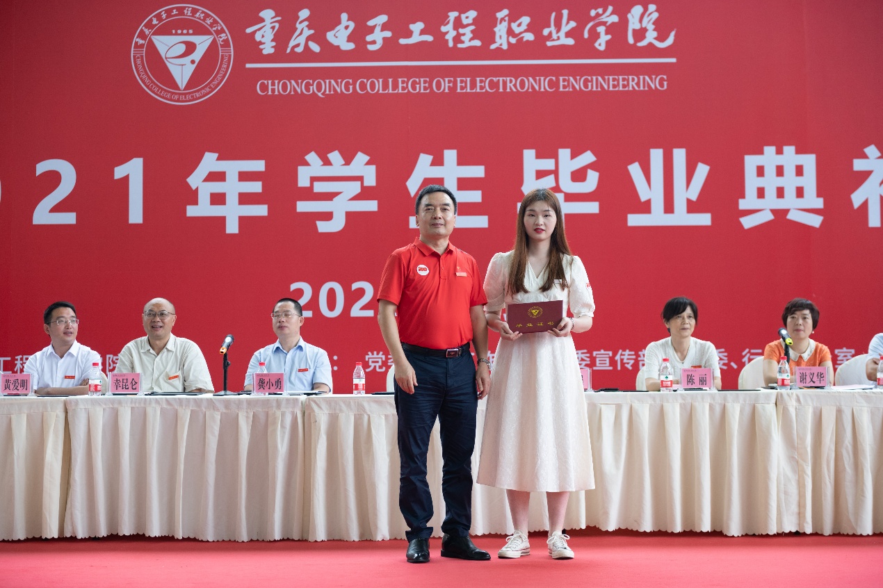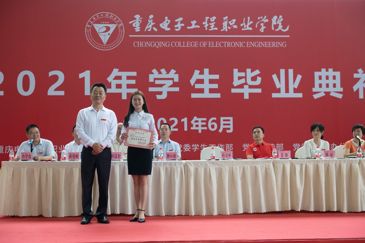 党委副书记龚小勇宣读了《重庆市优秀毕业生表彰决定》,在热烈的掌声中,党委书记孙卫平为获得市级优秀毕业生代表颁发荣誉证书并合影留念。