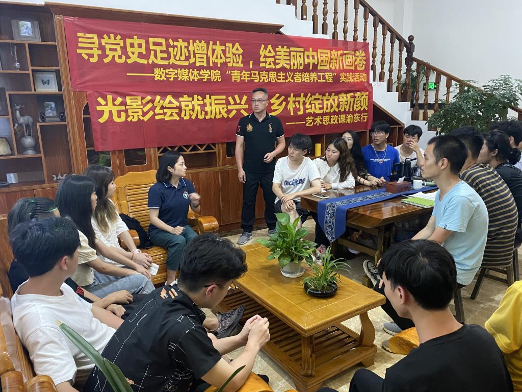 6月17日-23日,一堂“有颜色”的思政大课在重庆酉阳龚滩古镇和黔江濯水古镇展开,既融合党史场景与情景体验,又融合理论认知与实践感受,还融合集体宣讲和个性辅导,喻情于景,寄景悟理,学党史,强信念,重践行。形势与政策教研室教师们带着学生实地“打卡”党史足迹,在行走中讲解党史中的“红”、乡村振兴中的“绿”,新发展格局中的“蓝”,将“大道理”转化为“大白话”,同学们用画笔与相机记录“课堂笔记”,将时代主题融入作品之中。动画专业的赵婉茹同学分享体会:“一路走来,思政老师们将课堂上抽象的理论具体化,情景化,让我在行走中看到了与以往不同的景色,原来‘红色’、‘绿色’、‘蓝色’,竟如此多娇。”