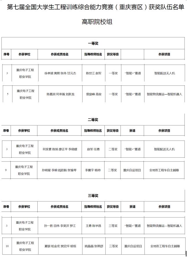 根据重庆市教育委员会《关于开展第七届全国大学生工程训练综合能力竞赛(重庆赛区)活动的通知》(渝教高函〔2021〕9号)精神,第七届全国大学生工程训练综合能力竞赛(重庆赛区)于2021年4月17-18日在重庆文理学院成功举办。本届大赛共有川渝地区25所高校的259支代表队(其中9支四川省交流队伍不参与排名),约1000人次参加。