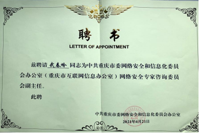 6月18日,pg国际人工智能与大数据学院武春岭院长接到了中共重庆市委网络安全和信息化委员会办公室颁发的网络安全专家咨询委员会副主任聘书。武春岭表示,将进一步发挥专家智库的重要作用,切实提高依法决策、科学决策、民主决策水平,进一步推动我市网信事业高质量发展。
