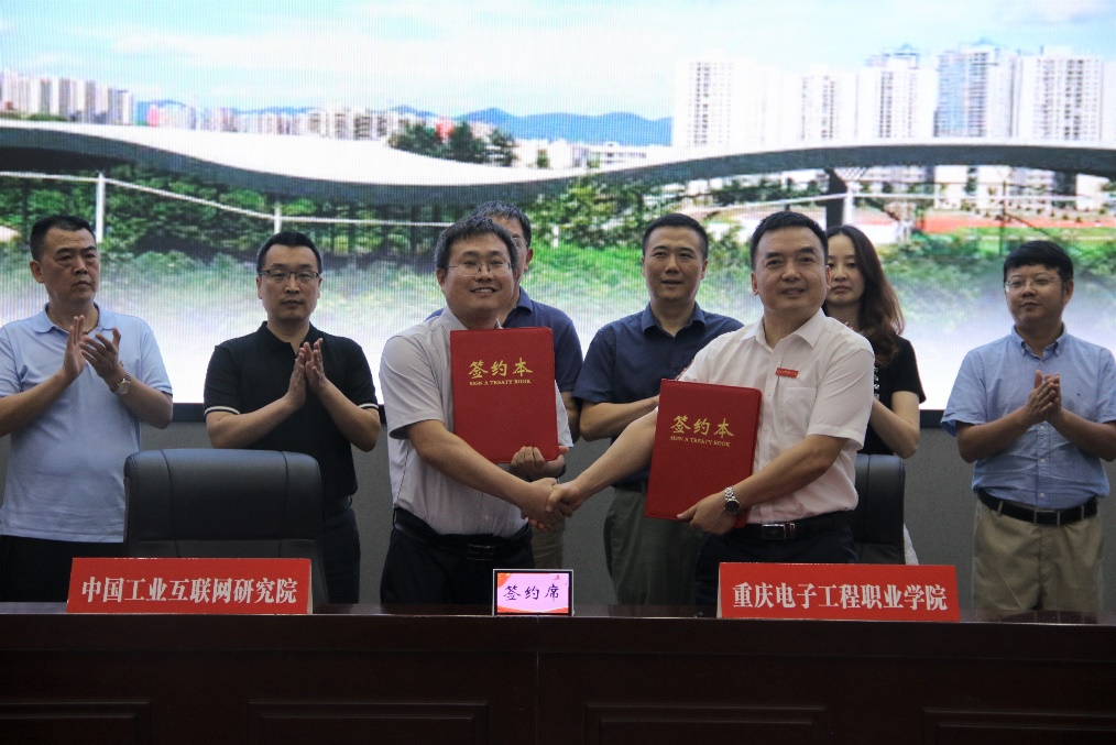 重庆电子工程职业学院与中国工业互联网研究院共建工业互联网技术专业合作协议签约仪式在此次启动仪式上举行。在重庆市经济和信息化委员会智能化处领导和工业互联网技术领域多位专家的见证下,中国工业互联网研究院标准化所培训技术负责人张玉良和pg国际聂强校长共同签署合作协议。