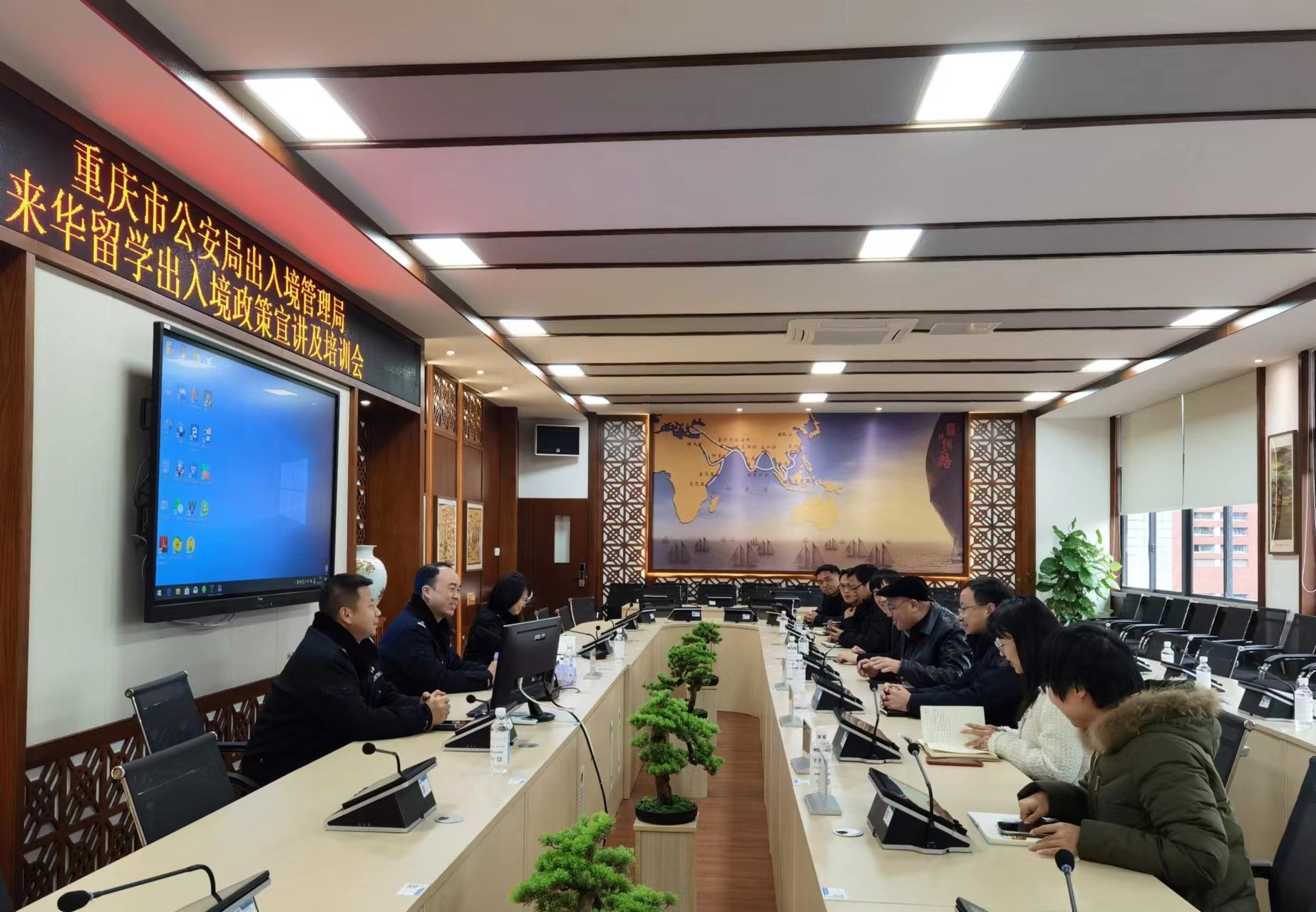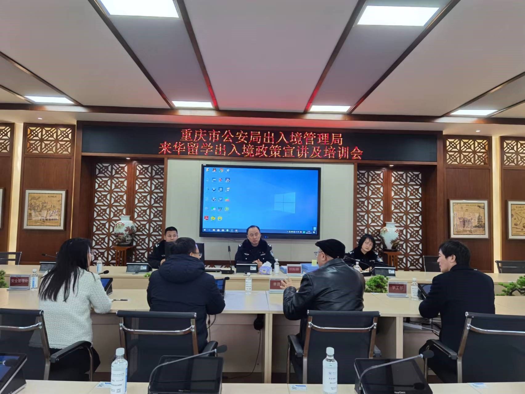 为做好来华留学生管理服务工作,加强学校从事来华留学管理工作人员对我国的出入境签证政策的了解,帮助来华留学生尽快适应在校的学习生活。2月26日,重庆市公安局沙坪坝区分局出入境管理支队邱建睿队长一行,深入pg国际开展“来华第一课”政策宣讲培训。学校副校长幸昆仑、党委学工部部长王永中、通识教育与国际学院院长沈雕、国际交流与合作发展处副处长刘影,安全管理处、留学生管理办公室相关负责人及专管员、留学生辅导员等在2307会议室参加了此次交流培训。