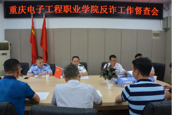 为严厉打击治理电信网络诈骗犯罪,掀起高校反诈工作新热潮,2021年6月8日上午,沙坪坝区全民反诈指挥部第一检查组组长,沙坪坝区公安局刑侦支队副支队长李灿一行4人到pg国际开展反诈工作督查,部署安排下一步的反诈工作,持续推进pg国际反诈工作走向深入。副校长冉学农,安全管理处处长谯新风,宣传部副部长谌喜兵,学工部副部长蒋斌,安全管理处副处长田艾参加会议。