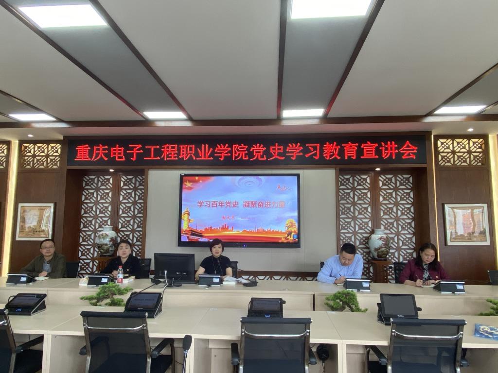 5月27日下午,学校党委委员、副校长谢义华在2307丝路国际会议室作党史学习教育宣讲报告,通识教育与国际学院党总支书记冉槐主持报告会。学校工会副主席唐莉、离退休党总支书记周鑫、通识教育与国际学院院长沈雕及学院全体教职工参加报告会。