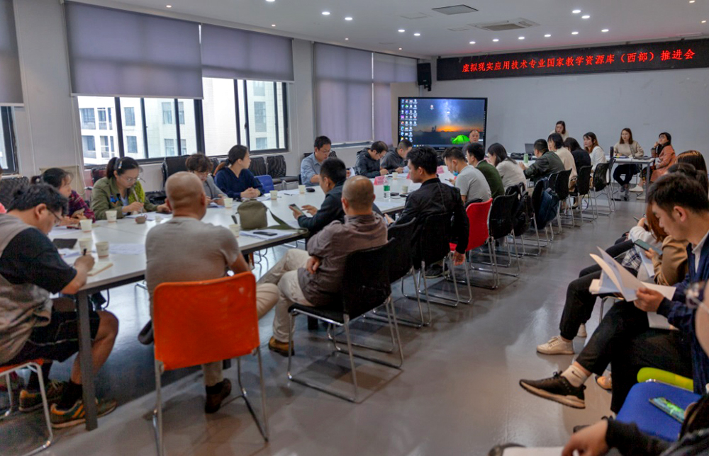2021年5月25日上午,由重庆电子工程职业学院数字媒体学院刘晓东院长主持,数字媒体学院参加资源库课程建设负责人和资源库项目负责人、四川邮电职业技术学院、新疆应用职业技术学院、重庆青年职业技术学院、重庆工商职业技术学院、重庆工程职业技术学院、重庆机电职业技术大学课程负责人,参加了《虚拟现实应用技术》专业国家教学资源库西部推进会。