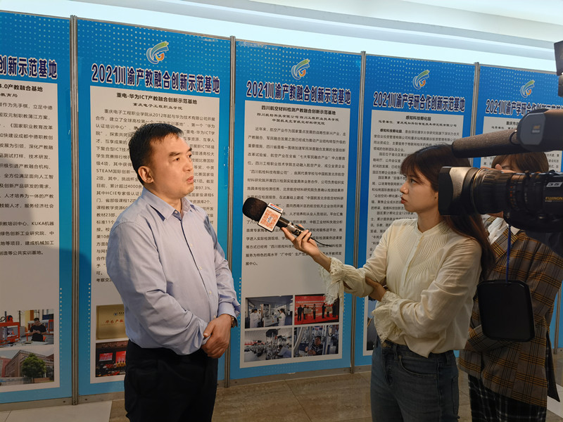 同期承办的“2021川渝产教融合创新发展论坛”上,围绕成渝地区双城经济圈产教融合创新发展等议题,成渝地区双城经济圈产教融合发展联盟成员单位的6位领导及专家分别做了主题报告和经验分享。会议期间,聂强校长围绕如何促进成渝地区产教融合协同发展接受了重庆电视台采访。