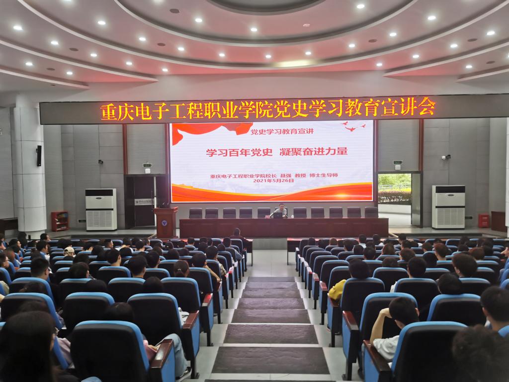 5月26日上午,pg国际举行党史学习教育宣讲报告会。市委教育工委党史学习教育进校园宣讲队成员、学校党委副书记、校长聂强教授作宣讲报告。人力资源处处长廖世萍主持报告会。学校二级学院教研室主任(系主任)、人力资源处全体党员、通信学院师生代表等300人参加报告会。