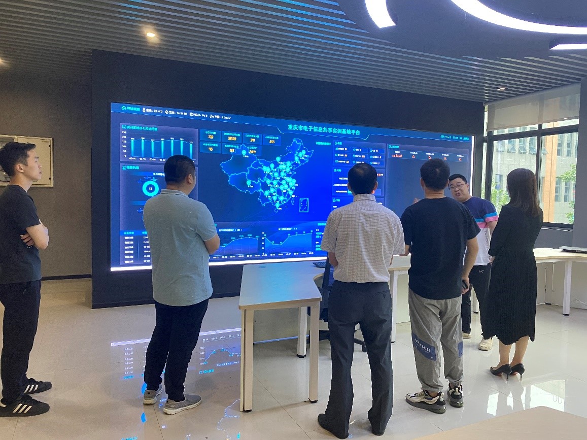 重庆渝北区重点建设和管线事务中心是重庆市渝北区重点建设项目办公室,在渝北区住房和城乡建委指导下开展工作。武新博士详细介绍了大师工作室等相关情况和科研创新项目,重点讲解了在研项目智慧工地相关的施工场地工人健康监测系统的具体情况。参观团队在武新博士的陪同下来到数字可视化研究室,对重庆市电子信息共享实训基地平台建设进行了详细的沟通,并对可能开展的项目进行了深入的座谈。