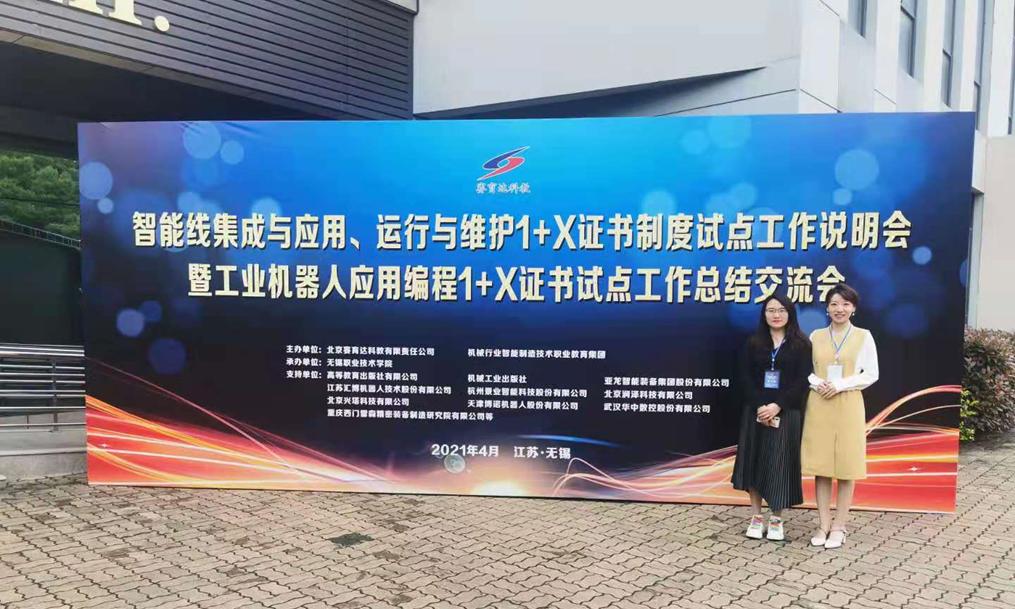 2021年4月24日,智能线集成与应用、运行与维护1+X证书制度试点工作说明会暨工业机器人应用编程X证书试点工作总结交流会在江苏无锡职业技术学院召开。智能制造与汽车学院教师王姗、邹冰倩出席参加本次会议。本次会议由北京赛育达科教有限公司与机械行业智能制造技术职业教育集团主办,高等教育出版社、亚龙装备、江苏汇博等10余家企业支持承办,共有来自全国的50余所高职院校代表参加。其中,王姗老师在2020年度推进工业机器人应用编程职业技能等级证书考核工作中,表现突出,被评为优秀考核师。全国共有26名考核师获此称号。
