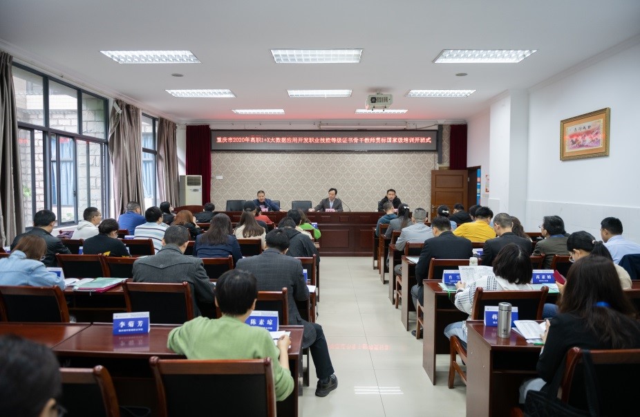 2021年4月26日,重庆市2020年度高职“1+X”大数据应用开发(java)职业技能等级证书骨干教师贯标国家级培训在南校区1-101室举行,人工智能与大数据学院院长武春岭、国信蓝桥教育科技(北京)股份有限公司1+X认证中心主任单宝军,以及来自我市高职院校的50名老师参加开班式。