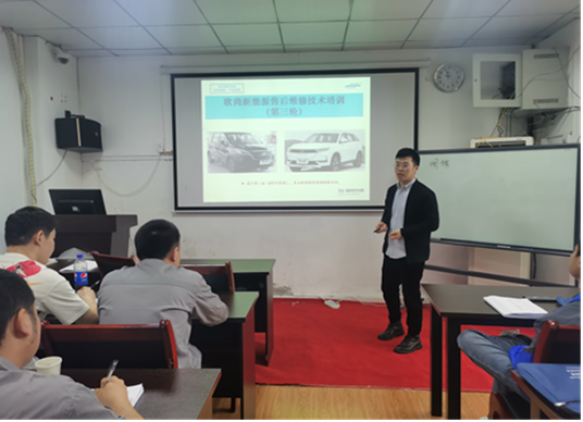 长安欧尚汽车维修技师新一轮培训继4月18日第一期开班以来,学院除了派出培训骨干负责本次培训外,还邀请了欧尚新能源汽车技术主管张勇,动力研究院电子系统开发工程师胡杰耀、动力总成集成应用资深工程师、青山变速器市场技术总监王怡等参与维修技术的培训,并现场解答经销商遇到的各种市场问题。