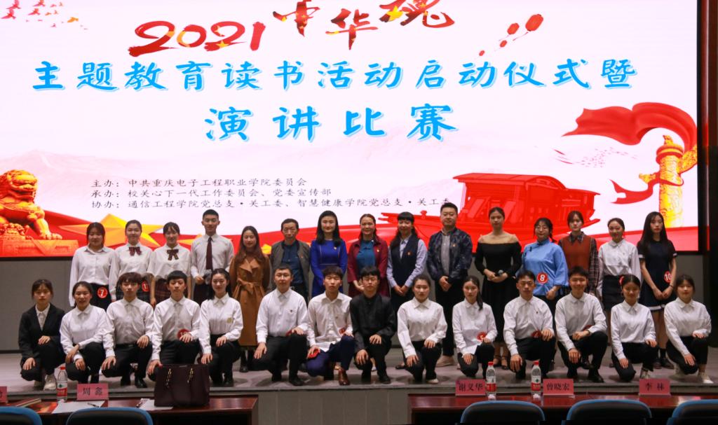 重庆电子工程职业学院2021年“中华魂”《民族复兴的旗帜》主题演讲主题教育读书活动启动仪式暨演讲比赛于4月22日下午在学校博远厅顺利举行。本次活动由校“关工委”、校党委宣传部主办,通信工程学院关工委,智慧健康学院关工委联合承办。