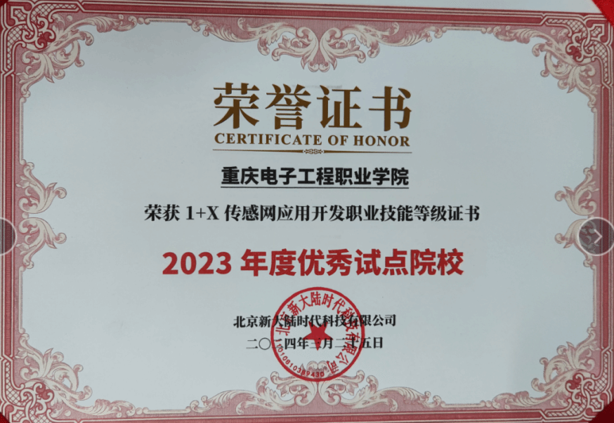 近日,新大陆为贯彻落实《关于在院校实施“学历证书+若干职业技能等级证书”制度试点方案》(教职成[2019] 6号)、《关于推进1+X证书制度试点工作的指导意见》(教职成厅函[2019] 19号)文件精神,遴选出2023年试点工作先进单位、个人。pg国际荣获新大陆1+X传感网应用开发职业技能等级证书2023年度优秀试点院校称号,电子与物联网学院教师刘跃荣获优秀工作者称号。