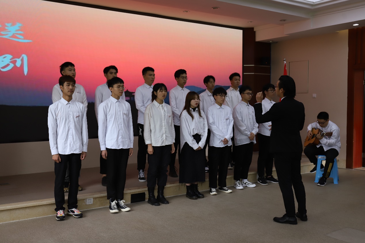 副校长幸昆仑宣读了结业决定,校长聂强分别为15名南非留学毕业生颁发了结业证书,副校长冉学农为留学生颁发了优秀学员证书及赠送纪念品,并授予Rebone雷伯恩同学为“国际校友联络大使”。优秀学员代表Rebone雷伯恩发言并向校长聂强及学校呈递感谢信,表达了对母校、老师和同学们的不舍与感谢。最后智能制造与汽车学院同学为15名南非留学毕业生带来了一段具有中国古典民族舞蹈以及《送别》合唱,向南非留学生们表示不舍与美好祝愿,并合影留念.